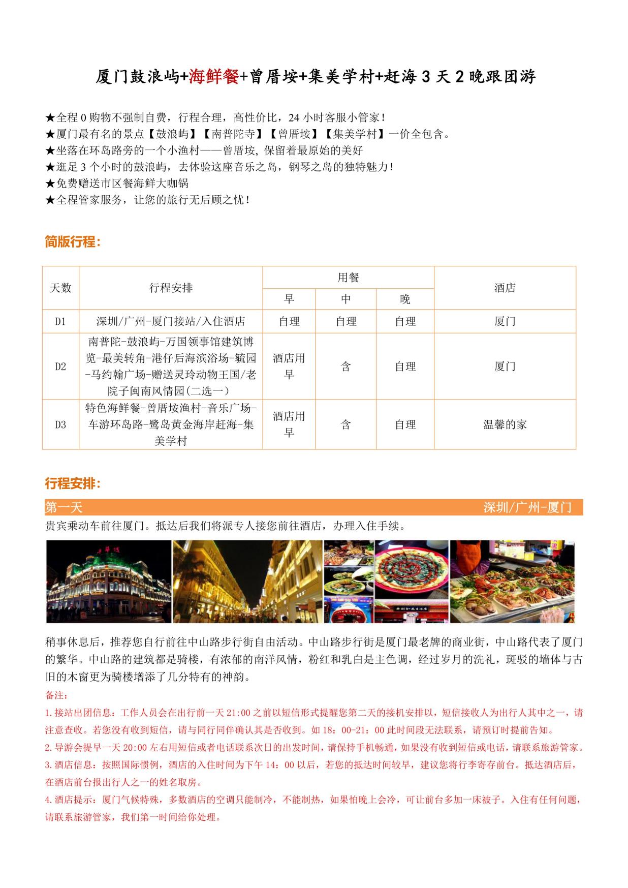 【厦门3日】厦门鼓浪屿+海鲜餐+曾厝垵+集美学村+赶海 3 天 2